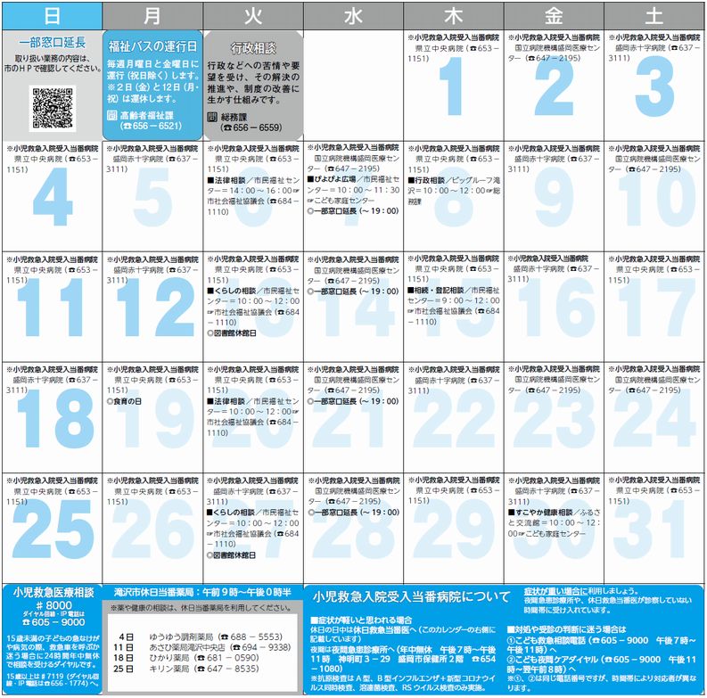 くらし 1月のカレンダー 9/14 前の記事 次の記事 発行日 : 2025年12月15日 自治体名 : 岩手県滝沢市 広報紙名 : 広報たきざわ 令和7年12月15日号 Tweet シェアする くらしのダイヤルー相談ー 移動図書館車~かっこう号運行日程