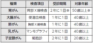 ※国が推奨するがん検診では、利益が不利益を上回るように検査項目や受診間隔、対象年齢が定められています(表1)