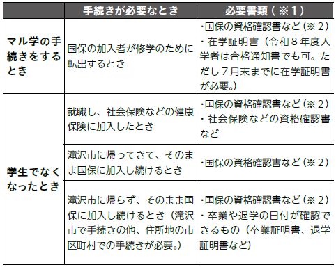 修学により他市区町村に転出する際は、必ず保険年金課に連絡してください。申し出がないまま転出届を提出すると、滝沢市の国保資格を喪失します。
