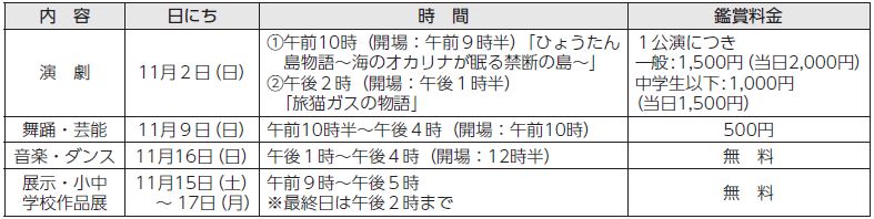 ※演劇については、特定非営利活動法人劇団ゆう事務局【電話】658-8988に問い合わせてください。
