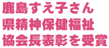 町内でNPO法人による児童発達、精神障がい者の就労・相談に取り組む鹿島すえ子さんが県精神保健福祉協会長表彰を受賞しました。12月10日、町役場で高橋町長を表敬訪問して報告。平成18年以来、地域に根ざした継続的な支援により、精神保健福祉の向上に大きく貢献してきたことが評価されました。