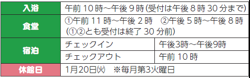 ※入浴+お食事の得々セットは、1月から値上げしました。ご利用の際は内容をお確かめください。
