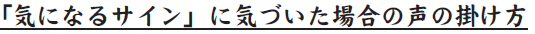 (2)孤立させないこと…一緒に取り組もうという姿勢で。単なる声かけでも抵抗感が和らぎ連帯感が形成されます。