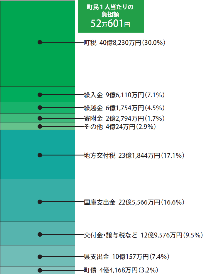 ・地方交付税…町の財政力に応じて、国から交付されるお金