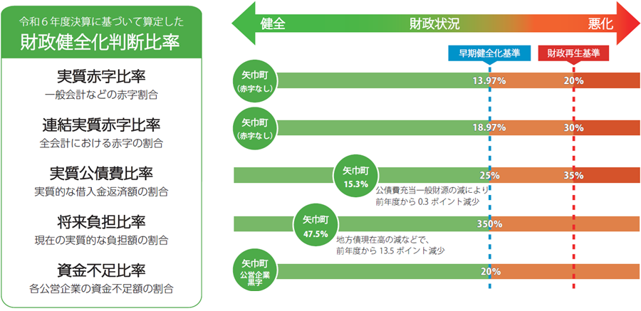 令和6年度決算を基に自治体の財政の健全度を示す全国共通の指標「財政健全化判断比率」を算出しました。町はどの指標も基準値内にあり、引き続き健全財政が続いています。