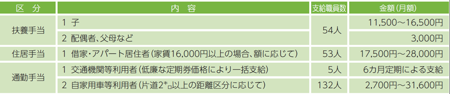 ◇扶養手当、住居手当、通勤手当(令和7年4月1日現在)