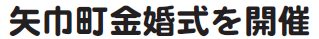今年、金婚式(結婚50年)を迎えるご夫婦の祝賀会を開催します。申込方法、参加費などの詳細は、広報やはば10月号と併せて配布する「やはばのふくし156号」をご覧ください。