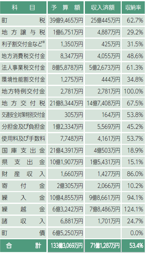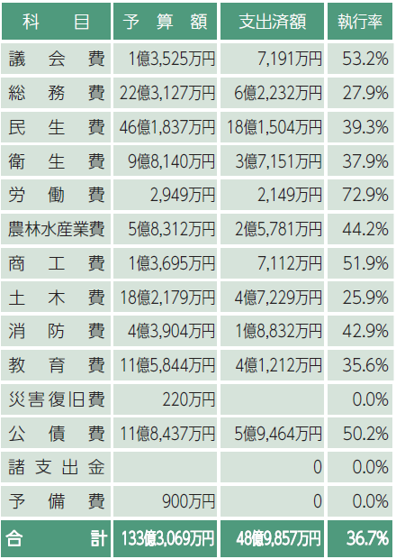 令和7年度の予算は当初、118億1,250万円でスタートしました。その後、令和6年度からの繰り越し事業費を加え、9月までに4回の補正を行いました。9月30日現在の予算総額は133億3,069万円です。