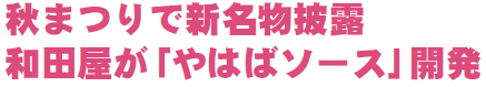高田の中華食堂和田屋は町の特産品開発事業に参画し、町産の農産物を活用した「やはばソース」を開発しました。町秋まつりで試食会を実施。今後、同店内で販売される予定です。試食会には監修した小野寺惠さんも参加し、このソースを使った料理が振舞われ、来場者が新たな町の名物に舌鼓を打ちました。