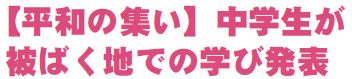 平和の集いを9月21日、やはぱーくで実施。平和教育の一環で、「ひろしま子ども平和の集い」に参加した澤藤太一(たいち)さん(矢巾北中3年)、眞下ひかりさん(同)が被ばく地での学びを発表。県原爆被害者団体協議会の下村次弘事務局長の講演、おはなしの森まつぼっくり隊による絵本の読み聞かせも行われました。