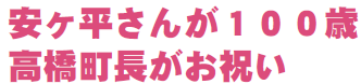 矢巾2区の安ヶ平タケさんが9月30日、100歳の誕生日を迎えました。10月3日、家族と役場へ高橋町長を表敬訪問。祝い状と花束を受け取りました。