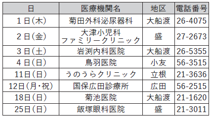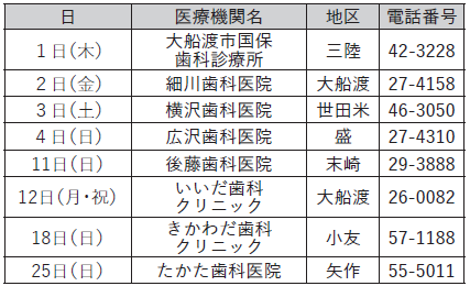 健康 1月の休日当番医 19/24 前の記事 次の記事 発行日 : 2025年12月26日 自治体名 : 岩手県住田町 広報紙名 : 広報すみた 令和7年12月号 ■気仙医師会 診療時間…9:00~17:00 ■気仙歯科医師会 診療時間…9:00~12:00 Tweet シェアする 町公共施設予約システムが稼働中です 交通安全情報