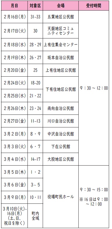 (1)申告相談期間中は、役場窓口では申告を受付していません。各申告会場へお越しください。