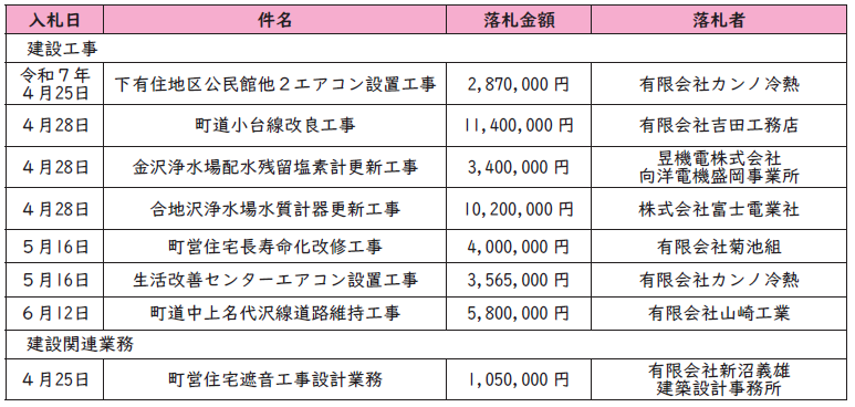 くらし 公共工事などの入札結果をお知らせします 4/22 前の記事 次の記事 発行日 : 2025年09月26日 自治体名 : 岩手県住田町 広報紙名 : 広報すみた 令和7年9月号 「公共工事の入札及び契約の適正化の促進に関する法律」に基づき、令和7年度の入札・契約の結果内容を公表します。 なお、入札結果は、町ホームページでも公開していますのでご確認ください。 Tweet シェアする 「人とまちをつなぐ持続可能な地域交通の実現」~安らぎとにぎわいのあるまちを目指して~ 町内各地区で敬老会が開催されました