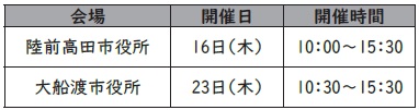 会場:陸前高田市役所5階 教育相談室3(陸前高田市高田町下和野100)