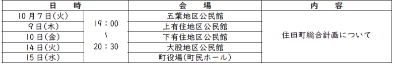 町の総合計画に関する住民懇談会を、次の日程で開催します。