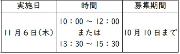 開設日時・場所:10月8日(水) 10:00~11:30 五葉地区公民館