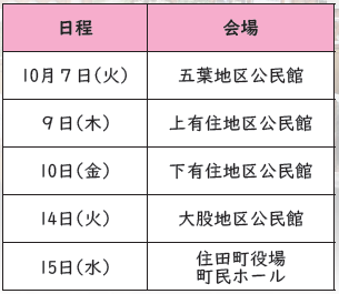 10月7日から15日にかけて、各地区公民館などで住民懇談会を開催しました。町からは神田謙一町長、小向正悟副町長、松高正俊教育長、課長級職員が出席。各会場合わせて地区住民ら延べ60人が参加しました。