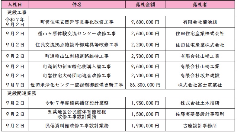 「公共工事の入札及び契約の適正化の促進に関する法律」に基づき、令和7年度の入札・契約の結果内容を公表します。