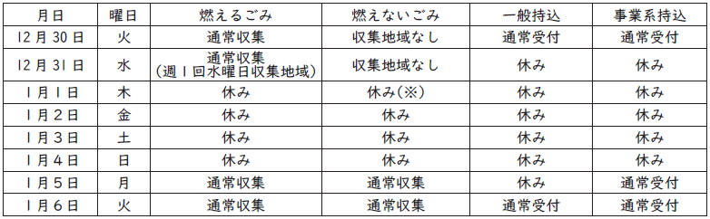 令和7年度年末年始のごみ収集などについて、下表のとおりお知らせします。