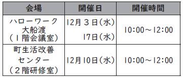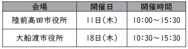 一関年金事務所では、下表のとおり相談会を開催します。予約制のため、相談を希望する方は開催日の前日までにお申込みください。