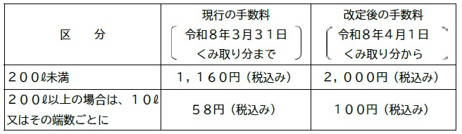 今後も、安定したし尿収集業務を提供するため、令和8年4月1日から以下のとおり改定いたします。