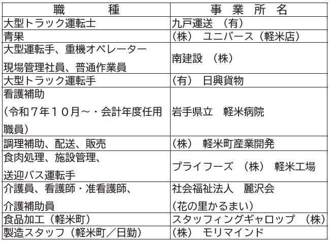 令和7年9月8日現在、ハローワーク二戸に申し込みのあった求人の中から掲載しました。この求人の中には、決定済みになっている場合があります。あらかじめご了承ください。