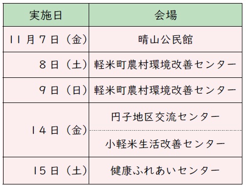 対象の人には10月中旬頃に郵送で問診票が届きます。胃がん検診は個別検診を行っていませんので、下記会場での受診をお願いします。どの会場でも受診できます。