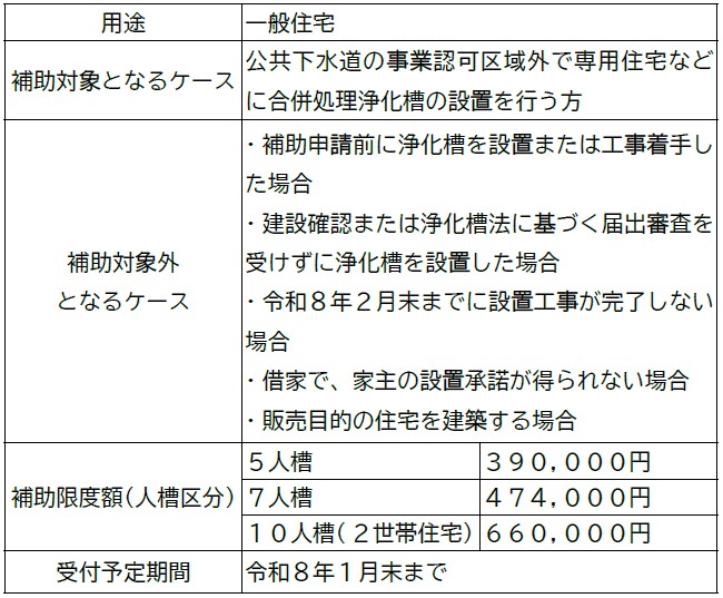 ◆合併処理浄化槽設置費用の補助制度(令和7年度分)について