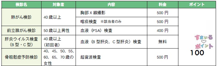 10月14日から各種健診、がん検診などを実施します。国保特定健診は対象者全員に、それ以外の健診は申し込みした人に地区の保健推進委員からご案内をお届けしています。追加申込もできますので、希望する人は保健センターまでお知らせください。