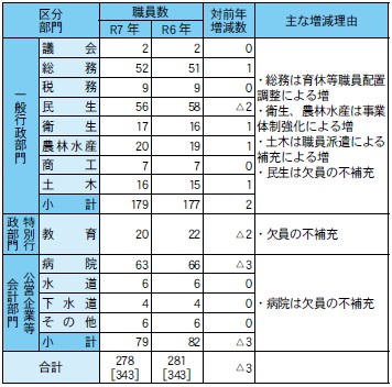 ※職員数は一般職に属する職員数。[ ]内は条例定数