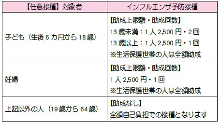 ※任意接種対象の人は、新型コロナ予防接種の費用助成はありません