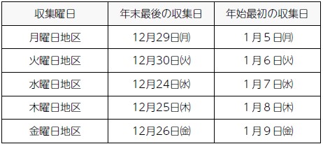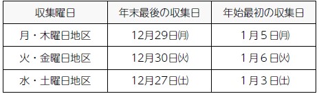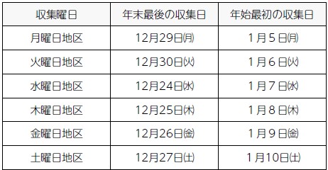 ■ごみなどの窓口(12月27日(土)~1月4日(日))