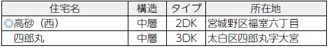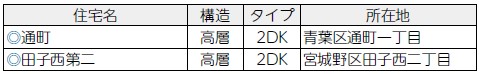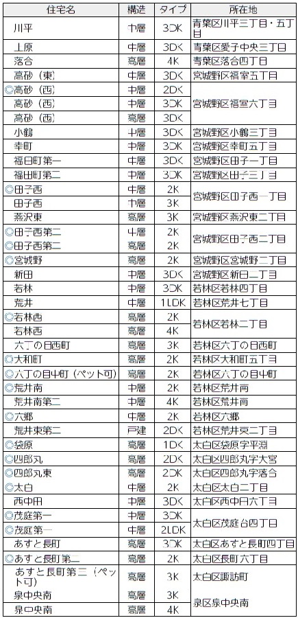 ※60歳以上の方・身体障害者1~4級の方・生活保護を受けている方などは、表の◎印の住宅に単身で申し込みできます