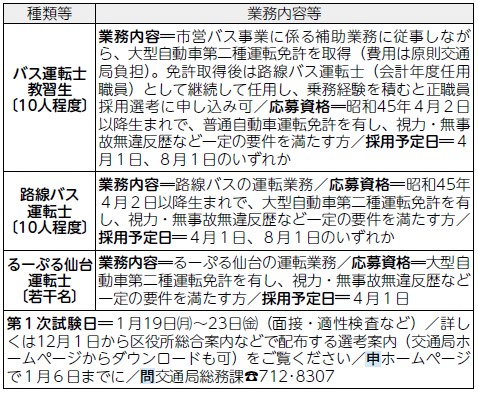 ◆市職員〔バス運転士教習生など〕(会計年度任用職員)