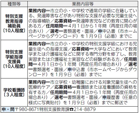 ◆市職員〔特別支援教育職員〕(会計年度任用職員)