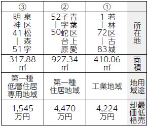 開札日時:10月23日(木)午前10時~(入札は郵送方式。立ち会い不可)