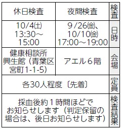 ◆エイズ・梅毒即日検査