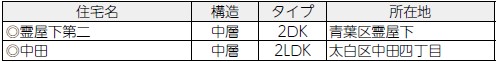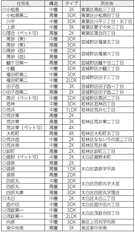 ※60歳以上の方・身体障害者手帳1~4級の方などは、表の◎印の住宅に単身で申し込みできます