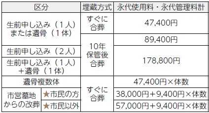 申込み:9月5日から市役所本庁舎1階総合案内・6階保健管理課、区役所総合案内、総合支所、北山霊園、葛岡墓園、いずみ墓園で配布する申込書に必要書類を添えて郵送