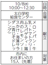申込み:9月17日午前9時から電話で太白学校給食センター