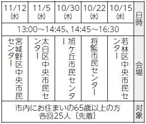 日時:10月24日~11月14日の毎週金曜日(全4回)午前10時~正午