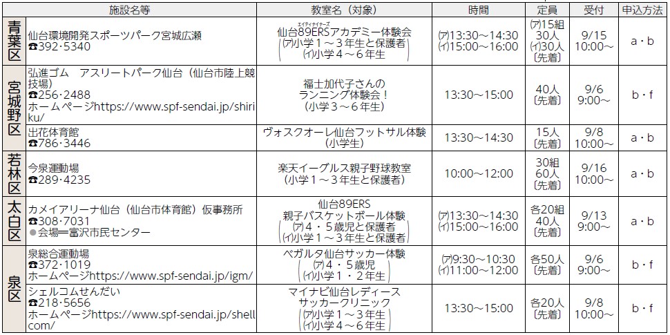 各施設の催しについては仙台スポーツ情報ナビをご覧ください