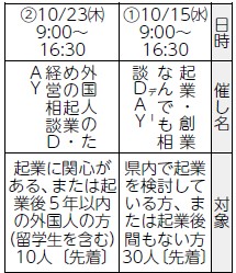 申込み:10月6日午前9時から仙台市起業支援センターホームページで。(1)は電話でも申し込み可