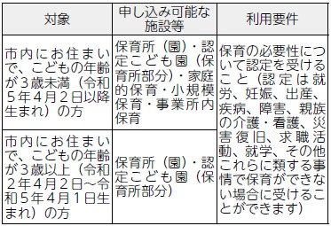 詳しくは10月14日から区役所保育給付課、宮城総合支所保健福祉課で配布する利用案内(市ホームページからもダウンロード可)をご覧ください