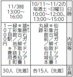 申込み:10月6日午前10時から仙臺緑彩館ホームページで