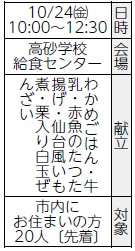 申込み:10月8日午前9時から電話で高砂学校給食センター