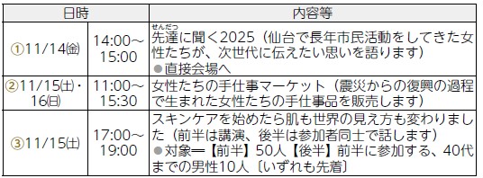 子育てや働く女性に関するセミナーなどもあり。詳しくは仙台市男女共同参画推進センターホームページをご覧ください