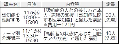 申込み:10月6日9:00から電話またはファクス、Eメール(申込時の必要事項と講座名を記入)で