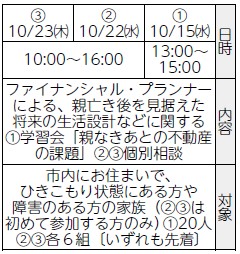 申込み:10月6日午前10時から電話でNPO法人障がい者の暮らしとお金の相談室